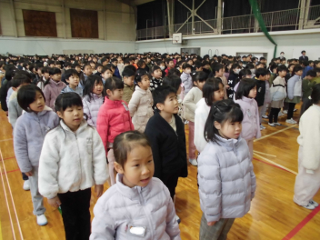 令和7年も残りひと桁となった火曜日です。9月1日の始業式から授業日数77日を経て、本日「伊佐見小学校2学期終業式」を実施となりました。閉鎖中の学級はあったものの、それでも節目の機会を持てたことに安堵しているところです。保護者・地域の皆さん、今学期も本校への温かな御支援をありがとうございました。