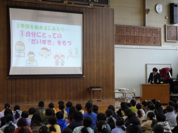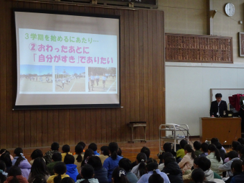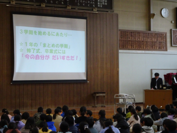 「この2学期間にみられた素敵な姿を新たな年に繋げよう。残念な部分とはおさらばしよう」といった主旨の話を届けました。