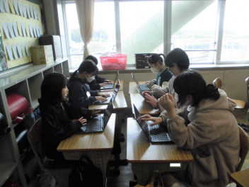 (↓) 2年生代表 ※全校での参加は叶わなかったものの、19日に教室で行った臨時終業式で発表してくれました。