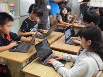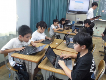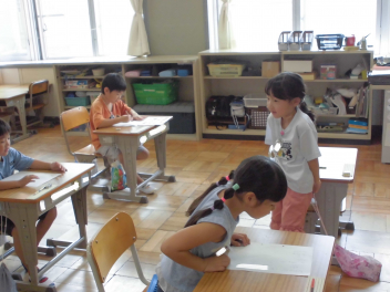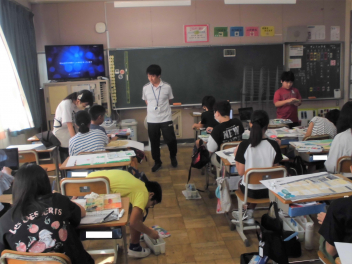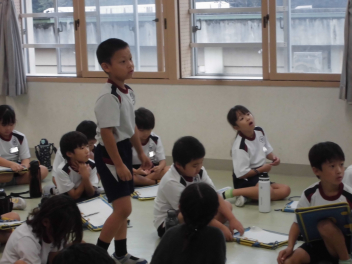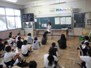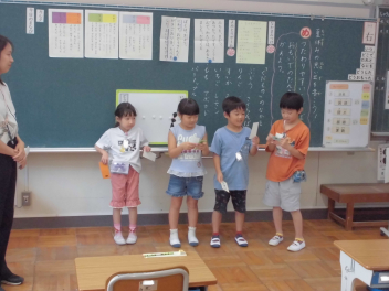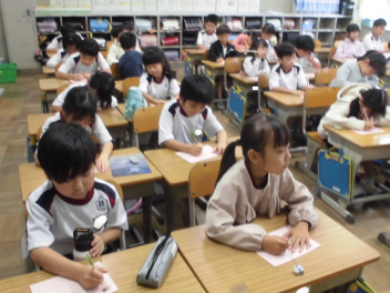 (↓) 9/30 ひなの先生;若草1組にて国語の授業を公開。子供たちは「いつ」「どこで」「だれが」…といった文の成分について理解した後、短文作りに取り組みました