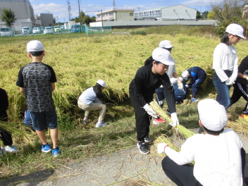 もう1つは、「稲刈り」に汗を流した5年生の様子です。10月17日(金)のことでありまするwink