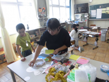 (↓) 10/8 澤木先生;若草2組にて図工の授業を公開。ハロウィンパーティーに向け、オリジナル衣装を作りました