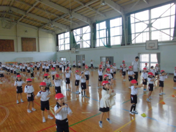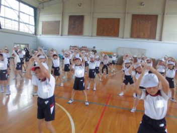 (↓) 3・4年生;伊佐見小ソーランの練習。