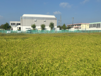 (↓) 5年生がもみ蒔きを経験した田んぼでは、稲穂が頭を垂れ始めております。