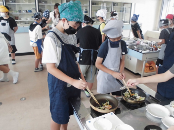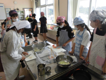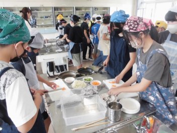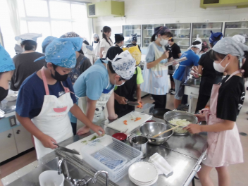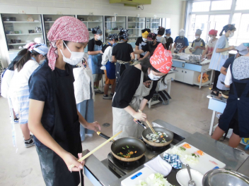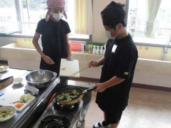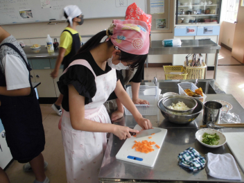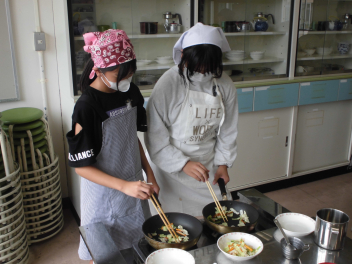 ③④校時に、6年1組が家庭科の授業で調理実習「野菜炒め」を行っておりました。