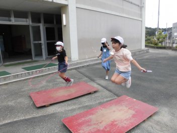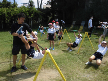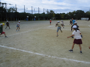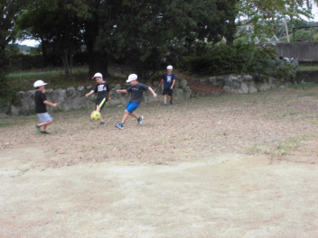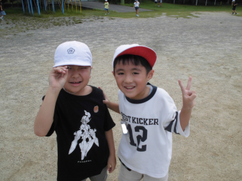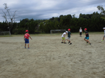 (↓) 運動場にて、元気いっぱい体を動かす子たちwink