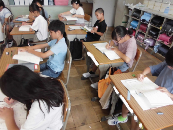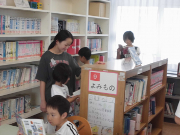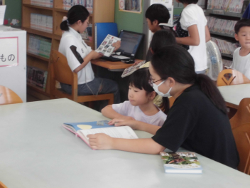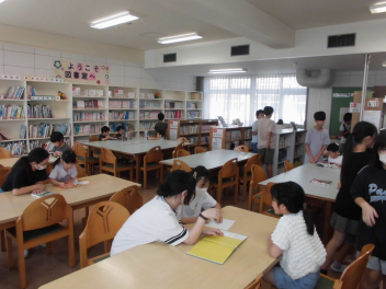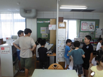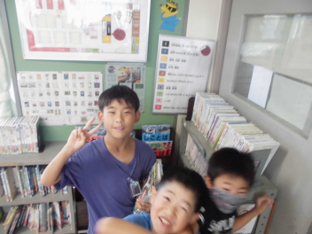 ちなみに…。暑さ厳しく、昼休みどころか中休みも外遊びができなかった17日(水)の図書室はこんな様子でした。