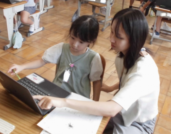 (↓) 若草学級;ひなの先生、美希先生と生活科の授業。秋の虫等について、調べました。スケッチも上手
