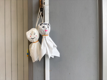 (↓) まずは、校長室にぶら下がっていた「てるてる坊主」から。