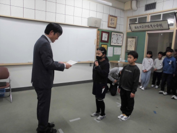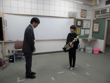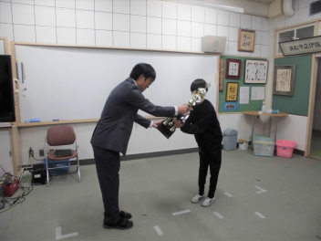 まずは、各学年及び3色縦割対抗優勝チームへの、賞状&優勝トロフィー授与から。