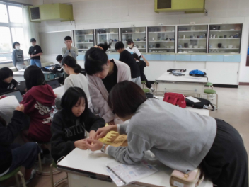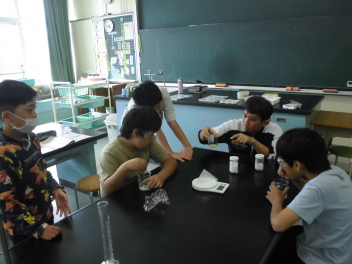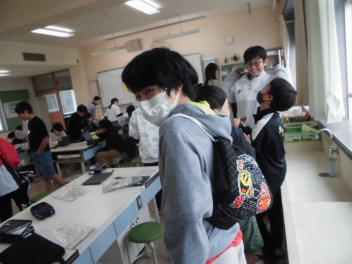 (↓) 若草学級;渥美先生と理科の授業。水溶液の性質を知るために、実験開始です