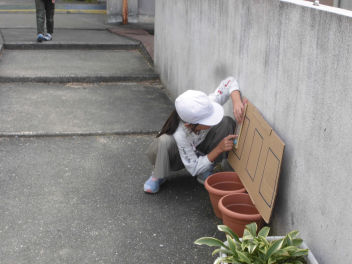 (↓) 若草学級;澤木先生、徳増先生との理科授業。「光の当たり方」について、鏡を手に観察中。みんな楽しそうsad
