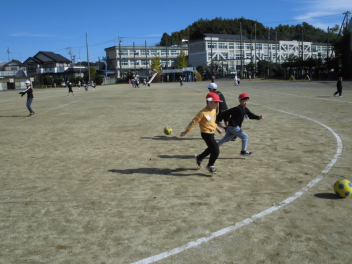 運動場のあちらこちらでサッカーボールを蹴り、上級生に「ここはボールを蹴っちゃあダメなところだよ」と教えられている姿を目にしました。小学校にずいぶんと慣れ、活動範囲が広がってるようです。頼りがいのあるお兄さん・お姉さんから、約束事を教わってくださいね。(文責;縦の繋がりを改めて喜んでいる校長)