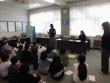 1つ目は、3学期にある「6年生を送る会」についてです。6年生にとって、卒業する学校が伊佐見小学校でよかったと思ってもらえるような、感動的な会を5年生全体で成功させたいです。そのために、一人ひとりが、自分の役割に一生懸命に取り組めるようにしていきたいと思います。私は学級委員として、これまで5年2組に呼びかけの声をかけたり、みんなが一生懸命に取り組める見本となるように、自分なりに努力したりしてきました。「6年生を送る会」でも学級や学年の子たちに声をかけ、5年生全員で「6年生を送る会」を成功させたいです。