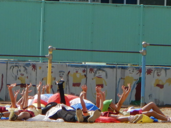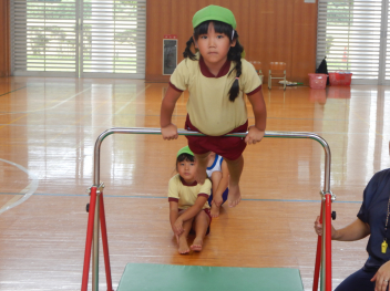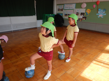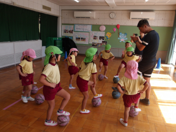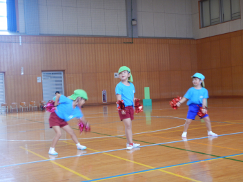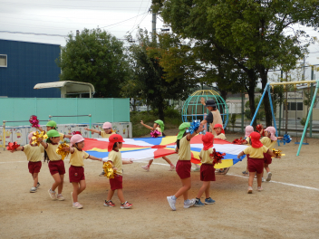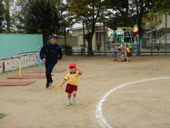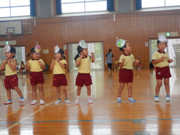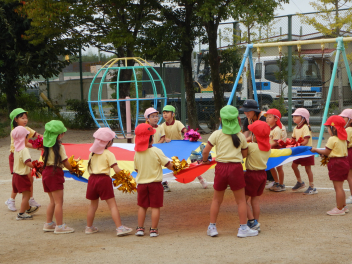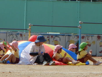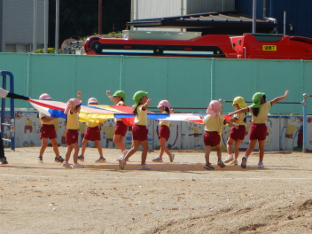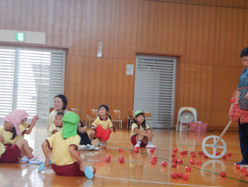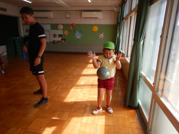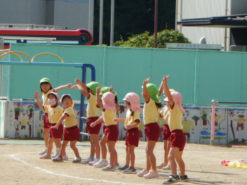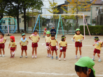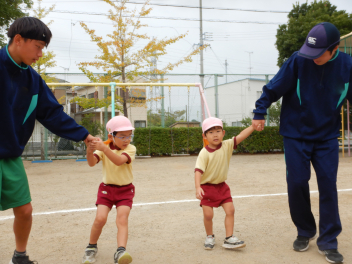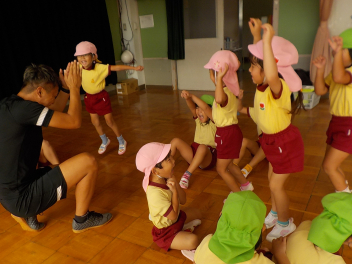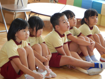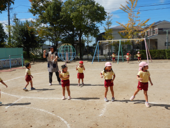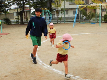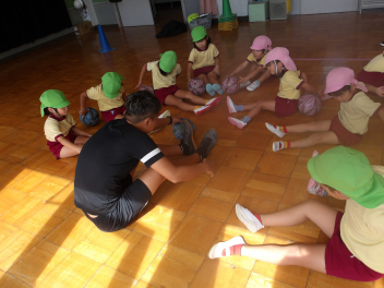 みんなで触れ合い遊びをしたり、運動会のリズムを見てもらったり、思い切り遊んで楽しかったですね