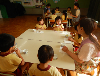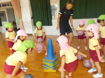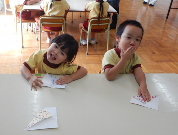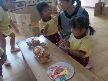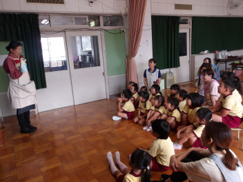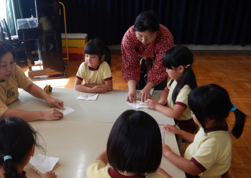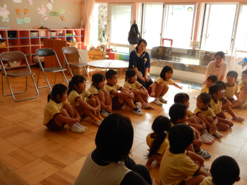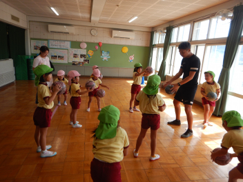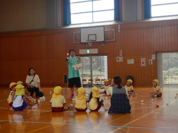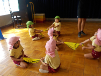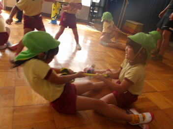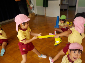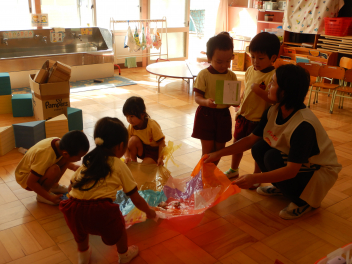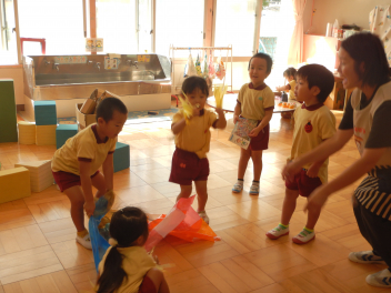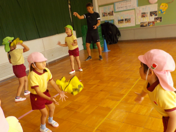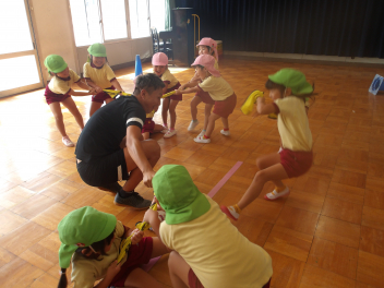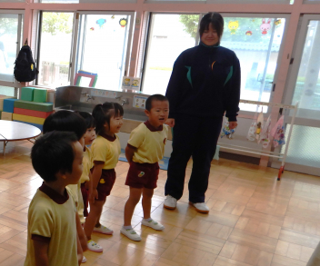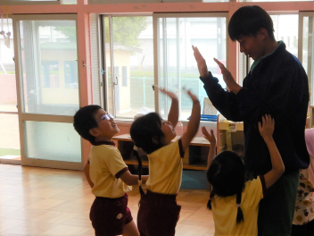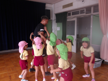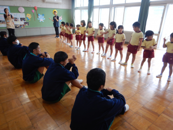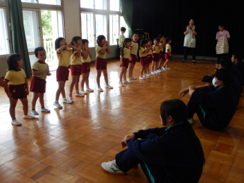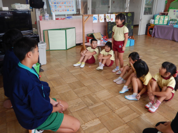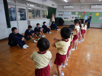 今日は高校生のお兄さんお姉さんが幼稚園に遊びに来てくれました。