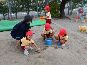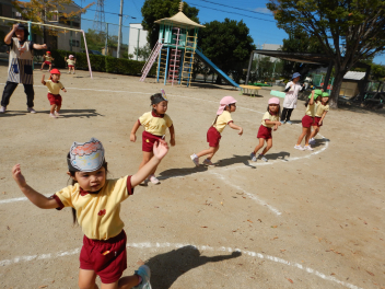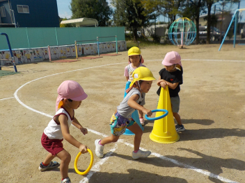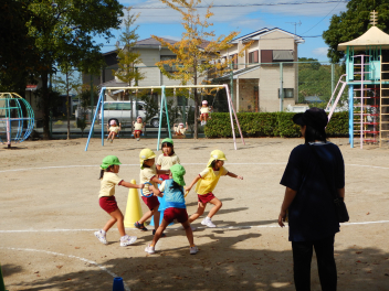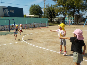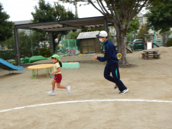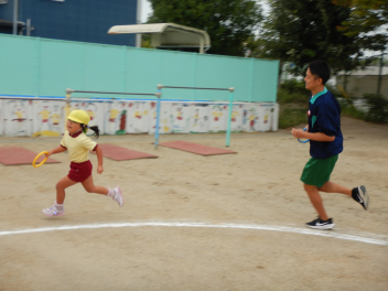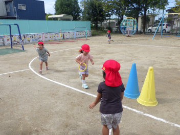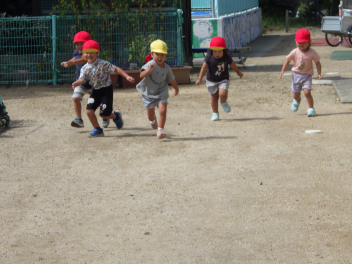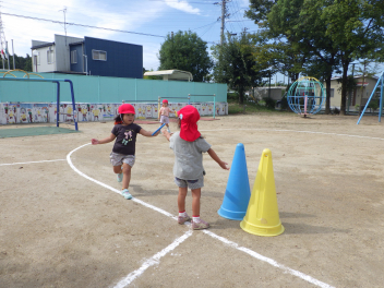 戸外遊びでは、一緒にリレーをしたり遊具や砂場で遊んだりして楽しみました。