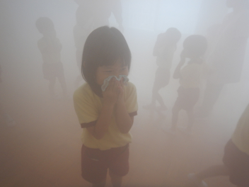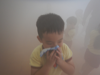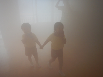 お兄さんお姉さんに、いつまでも手を振っていた子供たちです