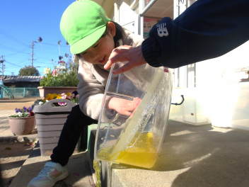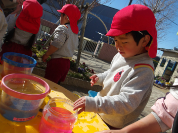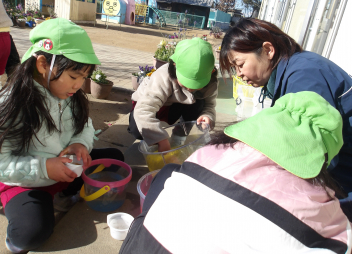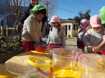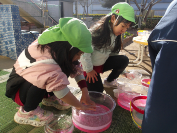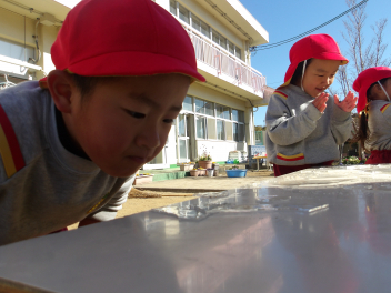 色がついていないことに驚きながらも、厚く張った氷に大喜びの年長組さんでした。