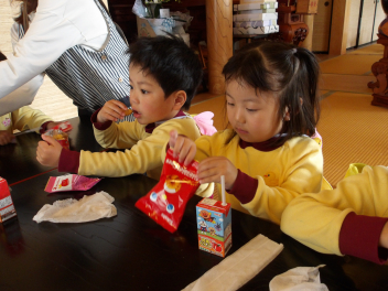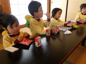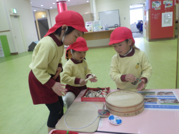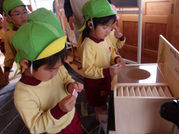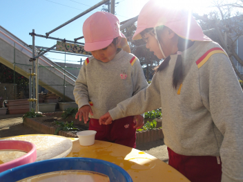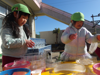 持ったり、割ってみたり、入れ物に移してみたり、いろいろな楽しみ方をしていました