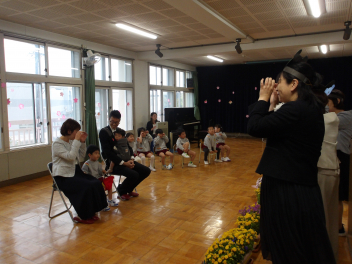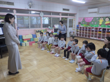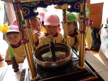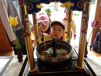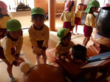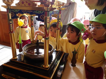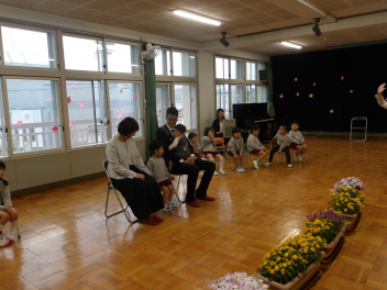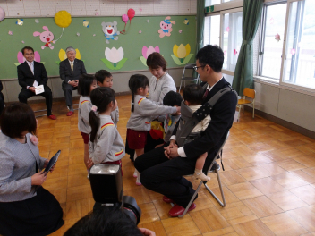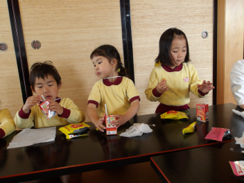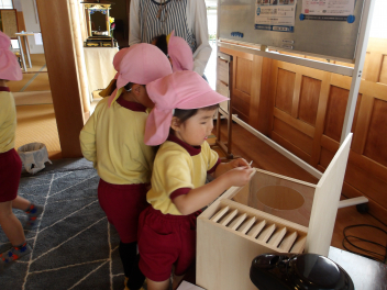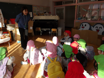 年中組さん、年少組さんも出てきて、氷を触らせてもらいました。