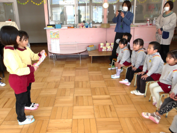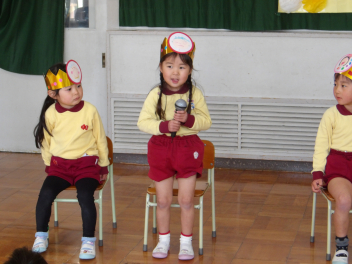 今日の司会は、年中組さんが担当します。頑張ってね
