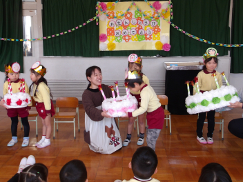 お誕生日のお友達、これからも幼稚園で元気いっぱい遊んで大きくなろうね!