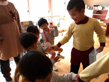 年少、年中組さんは、年長組さんが喜んでくれて大満足cheeky