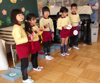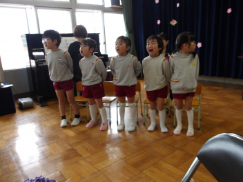 • 今日は、年少組さん、年中組さんが修了式に参加しました。