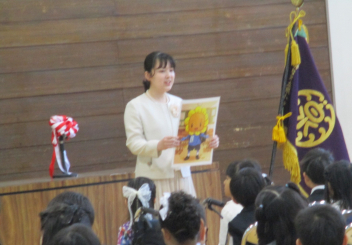 6年生の代表児童が立派にお迎えの言葉を述べました。