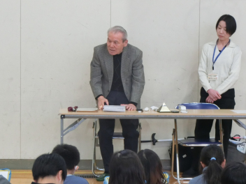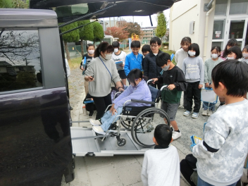 • 4年生が総合的な学習「みんなが楽しく暮らせるように」で、講師の方々を招いて福祉について学びました。