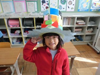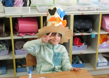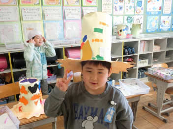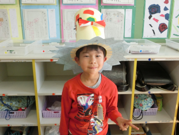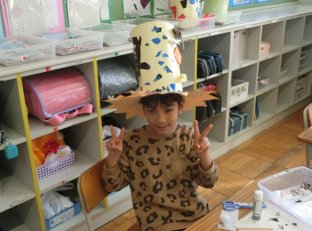 • きらきら学級の子たちが、図画工作科「すてきなぼうし」の学習で、ハット帽を作りました。