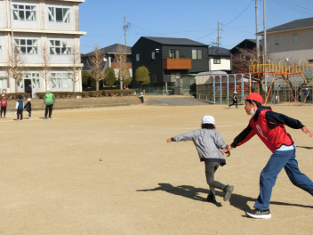 休み時間には、運動場で鬼ごっこやドッジボール、縄跳びなどをして、元気に遊んでいます。