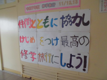 •  6年生の修学旅行が近づいてきました。グループで計画を立てたり、約束を確認したりと、準備は着々と進んでいます。準備が進むにつれて、楽しみな気持ちも大きくなります。