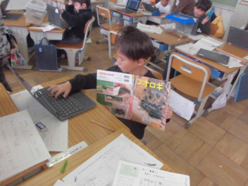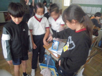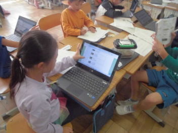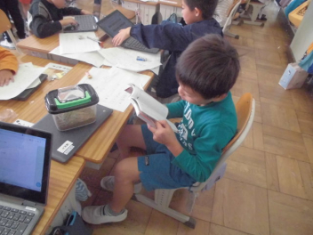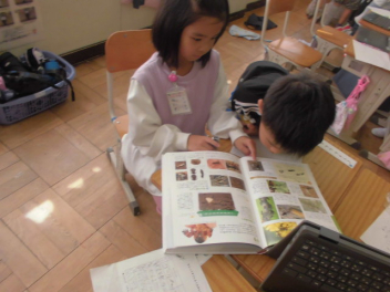 「わくわく虫ランド」開設に向けて、学びが充実しています。今日は、捕まえた虫について様々な手段で調べています。図鑑やタブレット端末など、それぞれの特徴を生かして調べます。