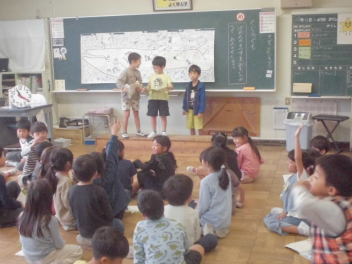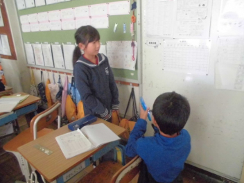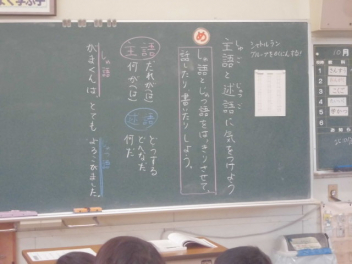 国語で、文のつくりについて学んでいました。文には、主語と述語があることや、主語と述語をはっきりさせて話したり書いたりすることの大切さを知りました。