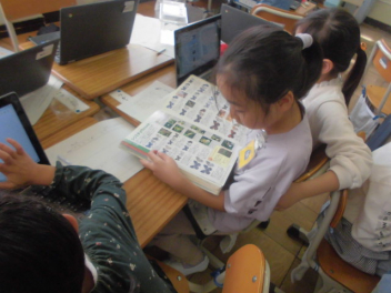 国語で「漢語と和語」について学習しています。今日は、漢字辞典を使っています。デジタル時代ですが、デジタルのみではありません。本や辞典も、大切な学びのツールです。