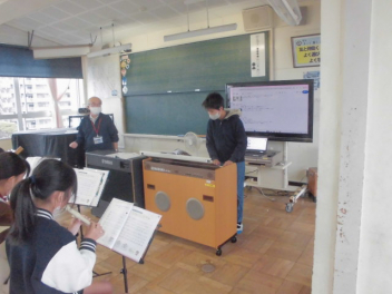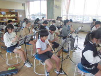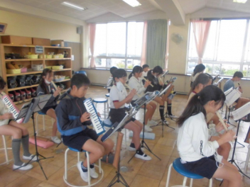 6年生が合奏の練習をしていました。様々な楽器を使っての合奏です。さすがは6年生の、美しい音色でした。
