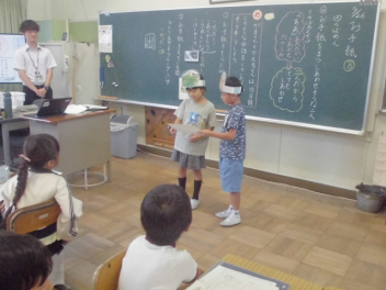 委員会ごとに「やさしさあふれる城北小」について探究している「城北探究」の授業が、順調に進んでいます。今日は、曳馬小学校6年生のみなさんと、リモートで交流をしました。曳馬小の6年生も、「総合的な学習の時間」に、委員会ごとの探究学習を行っているそうです。今日は、リモートで互いの教室をつなぎ、それぞれの探究成果について実践を紹介し合いました。同様の学習を進めながらも、異なる学びが展開されていることが分かり、互いに刺激をもらった貴重な交流でした。それぞれの学校で、今後の探究学習がさらに活発になりそうです。