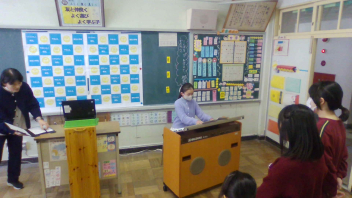 今日で2学期が終了します。子供たちは、まだ暑かった9月からの4か月間、様々なことに全力で取り組んできました。その過程で、たくさん成長しました。終業式は、体育館で行う予定でしたが、インフルエンザの流行が心配されるため、リモートで実施しました。式では、3人の代表児童がこれまでの頑張りについて、大変立派に発表してくれました。「自分の学びを、こんなにしっかりと振り返ることができるなんて、すごい!」と、感動しました。