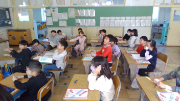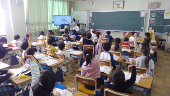 • 3年生「TEAM 3DAY  Let's Challenge」では、外国語科、社会科、理科で学んだことを伝えました。クイズ形式にするなど工夫して、楽しく伝えることができました。3年生らしく、元気に一生懸命に発表しました。