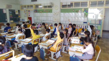 • 1年生「くじらぐもと きらきらのせかいへ」では、主に国語科と生活科の学習の成果を発表しました。小学校で、初めて経験する学習発表会です。大きな声で、元気よく発表できました。素敵な合奏も聞かせてくれました。