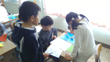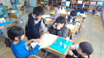 「電気の通り道」の学習です。豆電球が点灯するように、電気の通り道を考えます。点灯させることができて、一安心。小さい光だけれど、光ったときは大きな喜びを感じます。