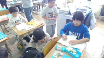 「かけ算」の学習も終盤です。みんな、九九がだいぶ定着してきました。フラッシュカード形式で、どんどん九九を練習していました。大きな声で、自信をもって言えていました。