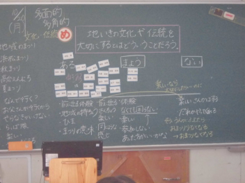 地域の伝統や文化を大切にするとはどういうことなのかを考えました。地域のお祭りをどう受け継ぐのか、様々な意見を出し合い、真剣に考えて議論しました。