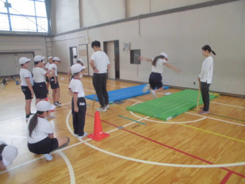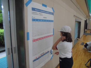 体育館で「体億力テスト」に取り組みました。一人ひとりが、自分の現在の体力について知ることが目的です。