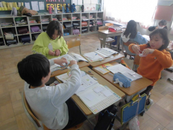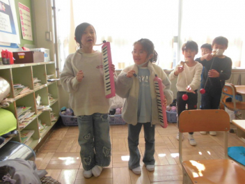 今週の金曜日の参観会で、1年生は「できるようになったこと」を発表するようです。今日は、そのリハーサルでしょうか。教室をのぞいたら、「校長先生、ここに座って!」と声を掛けられ、お客さん役を頼まれました。鍵盤ハーモニカでの上手な演奏を聞かせてくれました。説明もしっかりと言うことができて、完璧です。本番が楽しみですね。