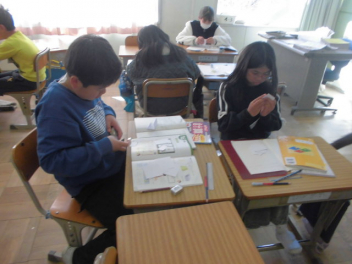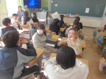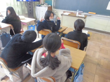「6年生を送る会」の、学年の出し物について話し合っていました。司会を務める子、黒板書記を務める子など、役割分担をして進めていました。子供たちだけで主体的に話し合っている姿が、大変素晴らしかったです。司会者から、「“6年生を送る会”の目標に沿った出し物になるように考えよう。」という声もありました。う~ん、すばらしい!