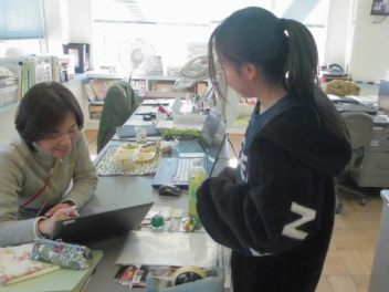 総合的な学習の時間で、「城北探究」に挑戦している6年生。学びを通して、自分たちの力で城北小を「やさしい学校」にする取組をしています。今日は、自分たちで考えた企画を携えて、教頭先生と相談をしていました。6年生の頼もしい姿を見ると、本当にうれしくなります。教頭先生も、楽しそうです。