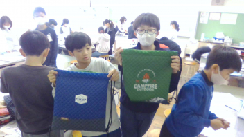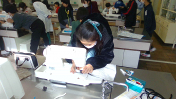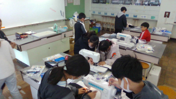 ミシンでバッグを制作しています。ボランティアの皆さんの手も借りながら学習してきた成果もあって、6年生はしっかりした手つきでミシンを扱うことができています。